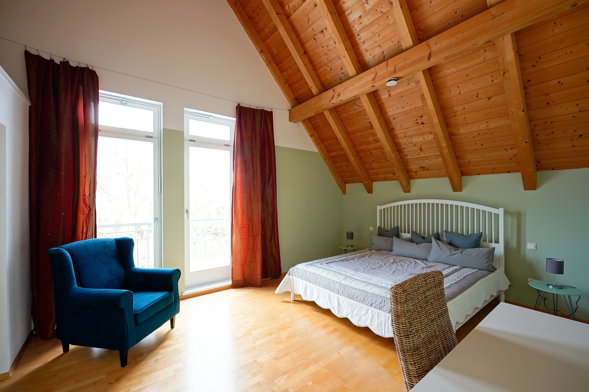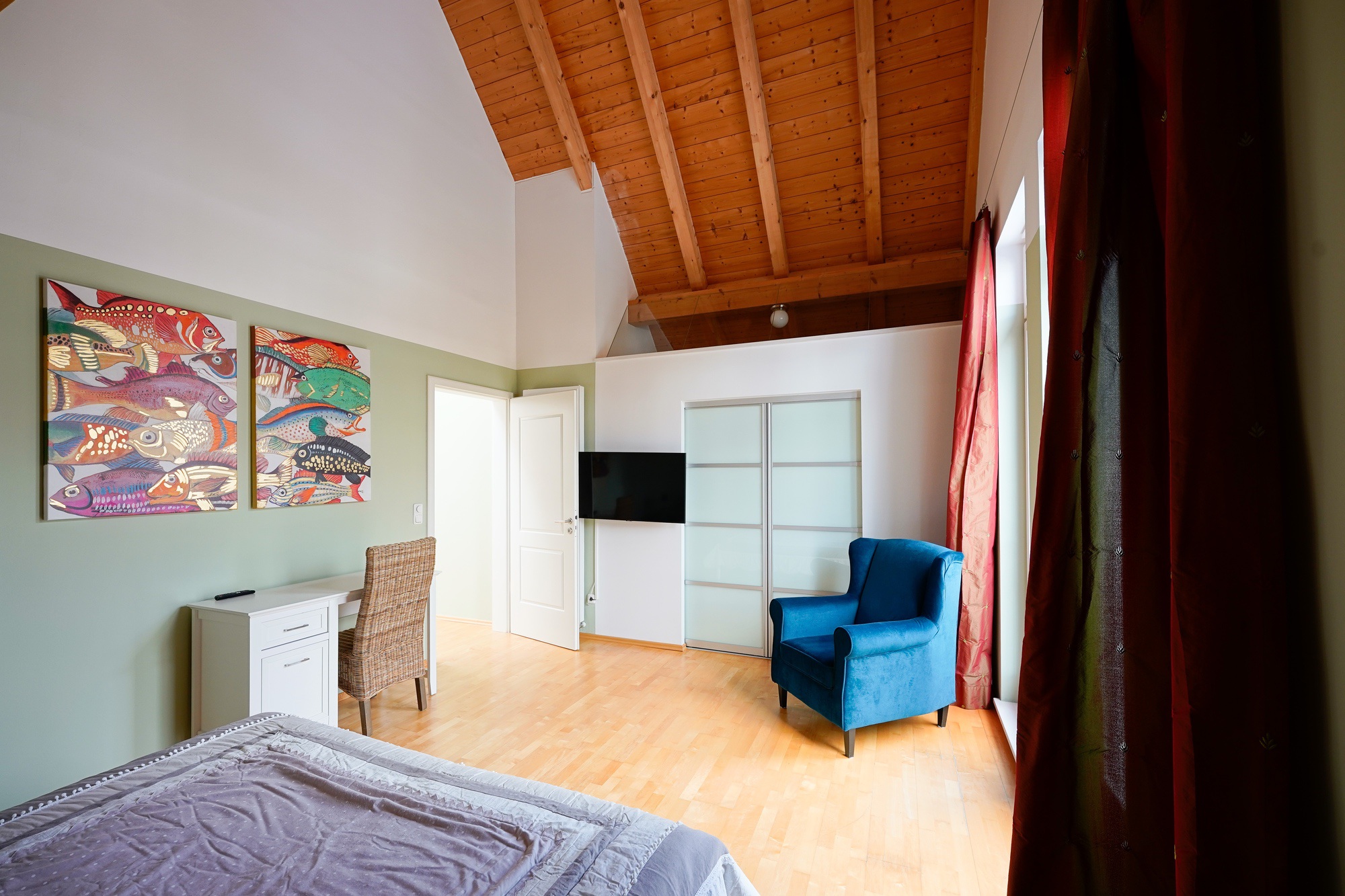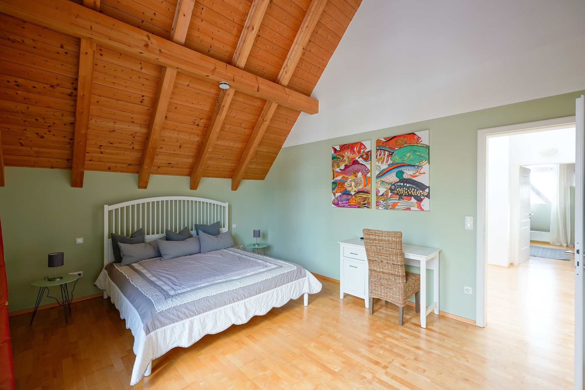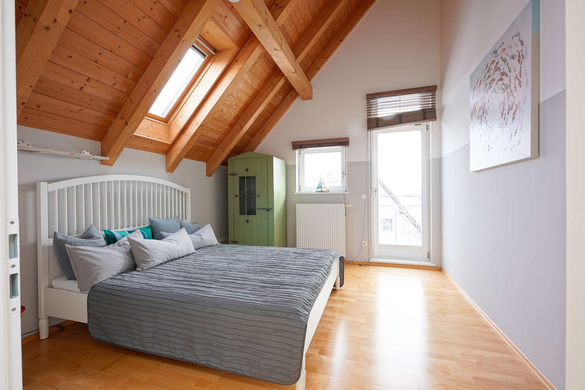 Die drei Schlafzimmer im Obergeschoß sind über den zentralen Flur zu erreichen. Durch den Glasfirst kommt sehr viel Licht ins gesamte Obergeschoß.